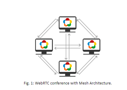 While it’s possible to hold video calls with multiple participants using peer-to-peer communication (Fig 1. mesh architecture), it stops being practical as the number of participants increases. This is because a peer must send their video/audio stream to every participant while also receiving a video/audio stream per participant.