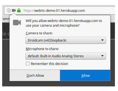 You will be asked to allow Camera and Microphone devices. Select what you would like to use and confirm clicking on the “Allow” button.