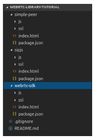 Each example has its own js folder, which is where the webrtc library and the custom app javascript files reside. They also contain a pair of SSL keys used by the http-server node package, defined in the package.json file, to serve the files. The keys are self-signed so you’ll need to add an exception in your browser in order to access the application.