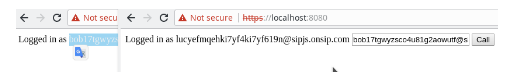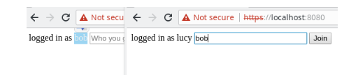 To get started, run the example and go to https://localhost:8080 in your browser, type a login name and wait for the application to log you in. Then you will see a message like “logged in as bobXXXXXXXX”, copy the login name and repeat the process in another browser tab, then paste the first user name in the “Who you gonna call?” box and click “Call” to initiate the call.