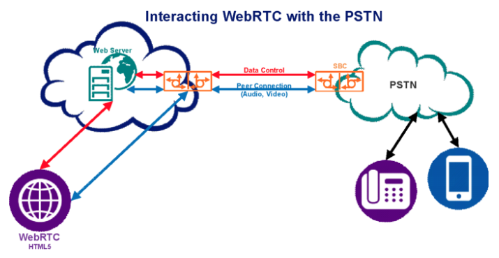 In simple words, the webRTC apps establish a bidirectional communication with traditional phones as having intermediaries that the session border controls and the PSTN, and for some data, controls a web server should also be part of this implementation. Obviously, the PSTN a PBX can be part of it.