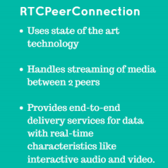 WebRTC consists of multiple APIs that perform different functions to establish a media session....