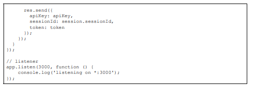 Next we create an opentok object and define the express routes. We end the file with the app listener on port 3000.