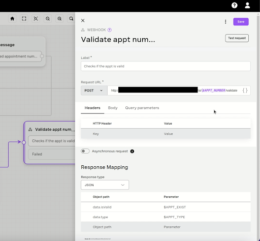 When a patient supplies a piece of data such as the Appointment ID, Ricardo must configure the workflow to supply that data to our custom application. The Collect blocks will gather that information from the user and pass them as a Parameter to subsequent blocks in Ricardo’s workflow. Then he can put in data blocks that validate that the information supplied by the user is of the correct type (a number or a date for example). Finally, he configures a WebHook block to send that Parameter’s data to our custom APIs in SimplyDoc. Using that WebHook, our SimplyDoc code can receive and validate that Appointment ID, as well as change the appointment to the new date in our database.