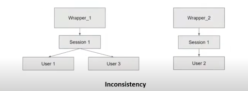 We also faced an issue with data consistency when two Wrapper instances were modifying the same session at the same time. Both would be reading and writing the same session document from mongoDB, thus causing an overwrite of some of the data that one of the instances changed.