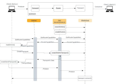 - Transport will emit connect and produce events and it returns a producer instance on the client side which will transfer the data.