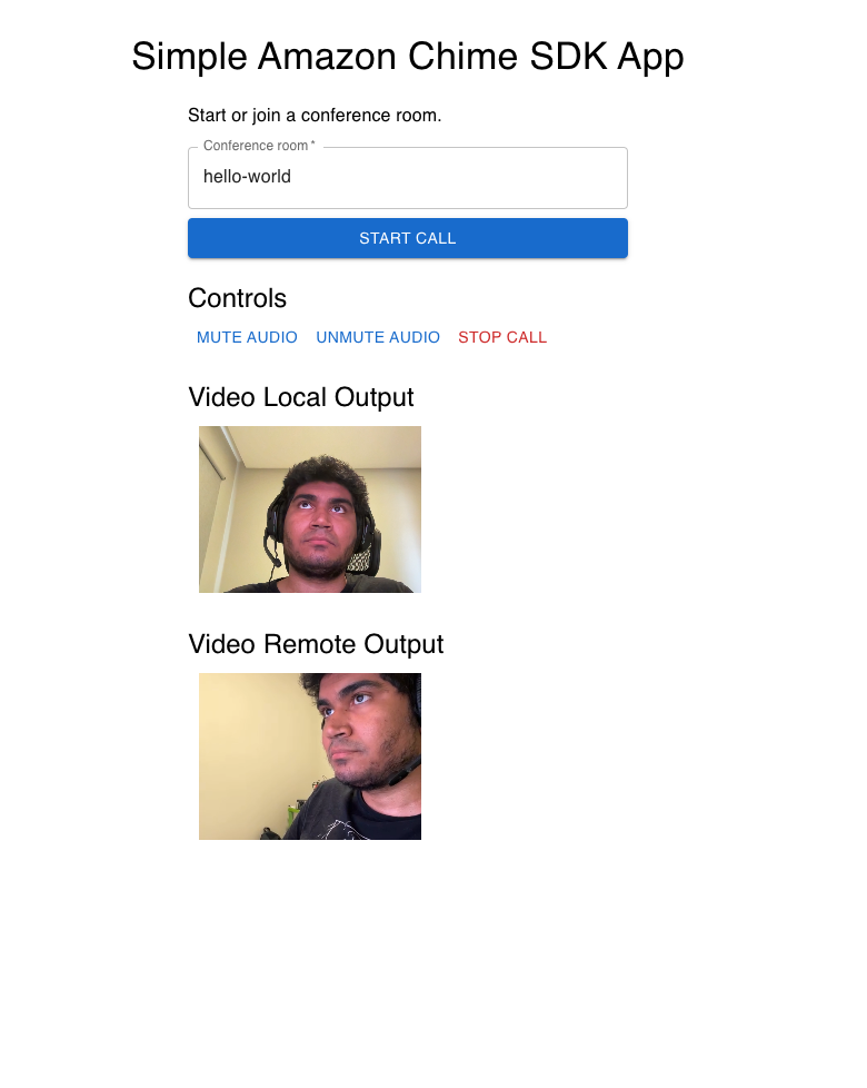 Now we have a call fully working, but just with the basics. For more controls and features, take a look at the Amazon Chime SDK page on GitHub. They have plenty of use cases, a few of them pretty advanced stuff. Here’s a demonstration of this same application evolving to support multiple peers and include even a focus on the participant currently speaking: