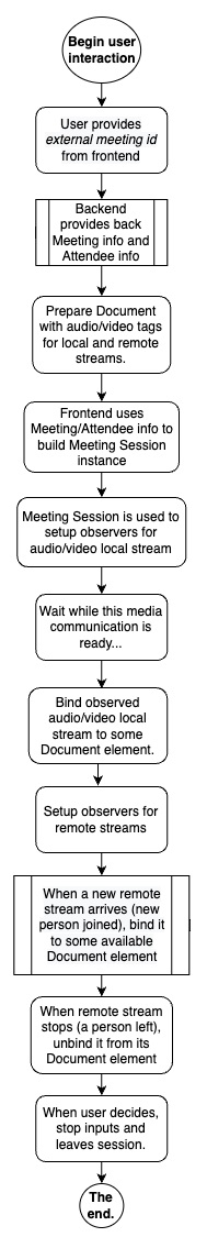 As you will notice, the backend part is very straightforward, the Amazon Chime SDK is handling all the hard parts for us on the server side.