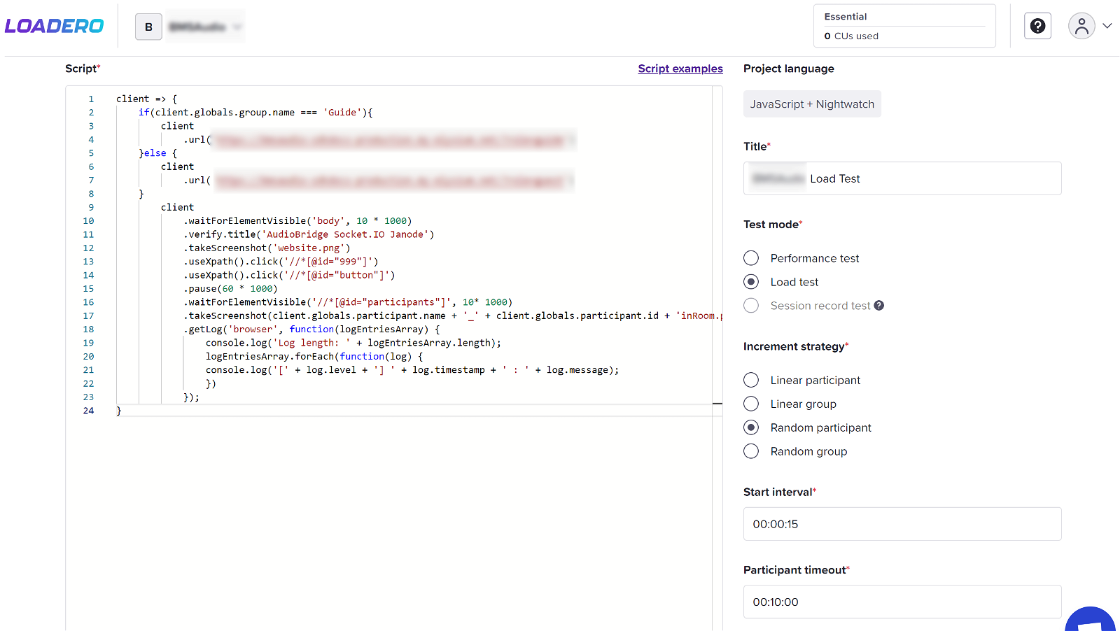 Now the test has been built, but the participants still need to be configured. This is where Loadero lets you create test groups.