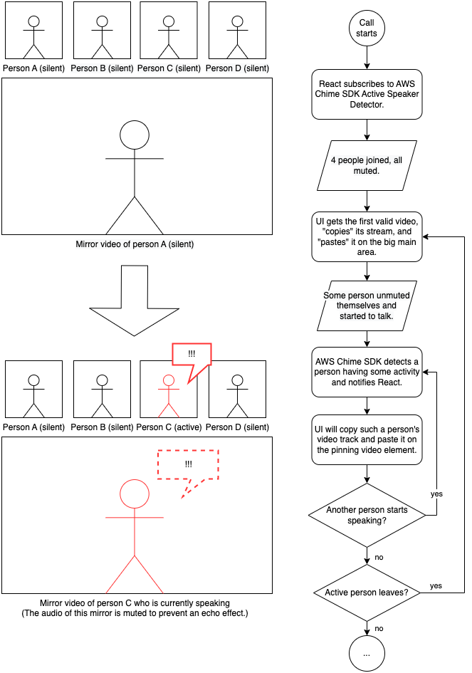 One more time, we noticed that Amazon Chime SDK gives you a lot of freedom for UI aspects and only actually cares about the WebRTC logic like the activity detection itself. From the speaker detection to its consequences to the user interface – we controlled it all!