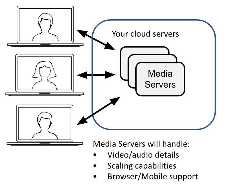 The complexity inherent in mesh networks gave rise to new architectures built around media servers. These are intermediate devices that help us distribute traffic. Media servers handle video/audio details, scaling, browser and mobile support.