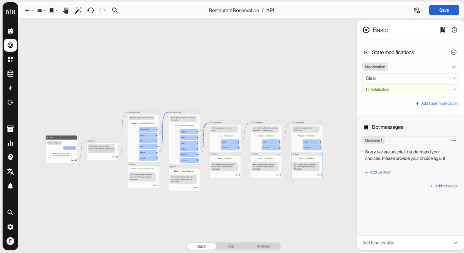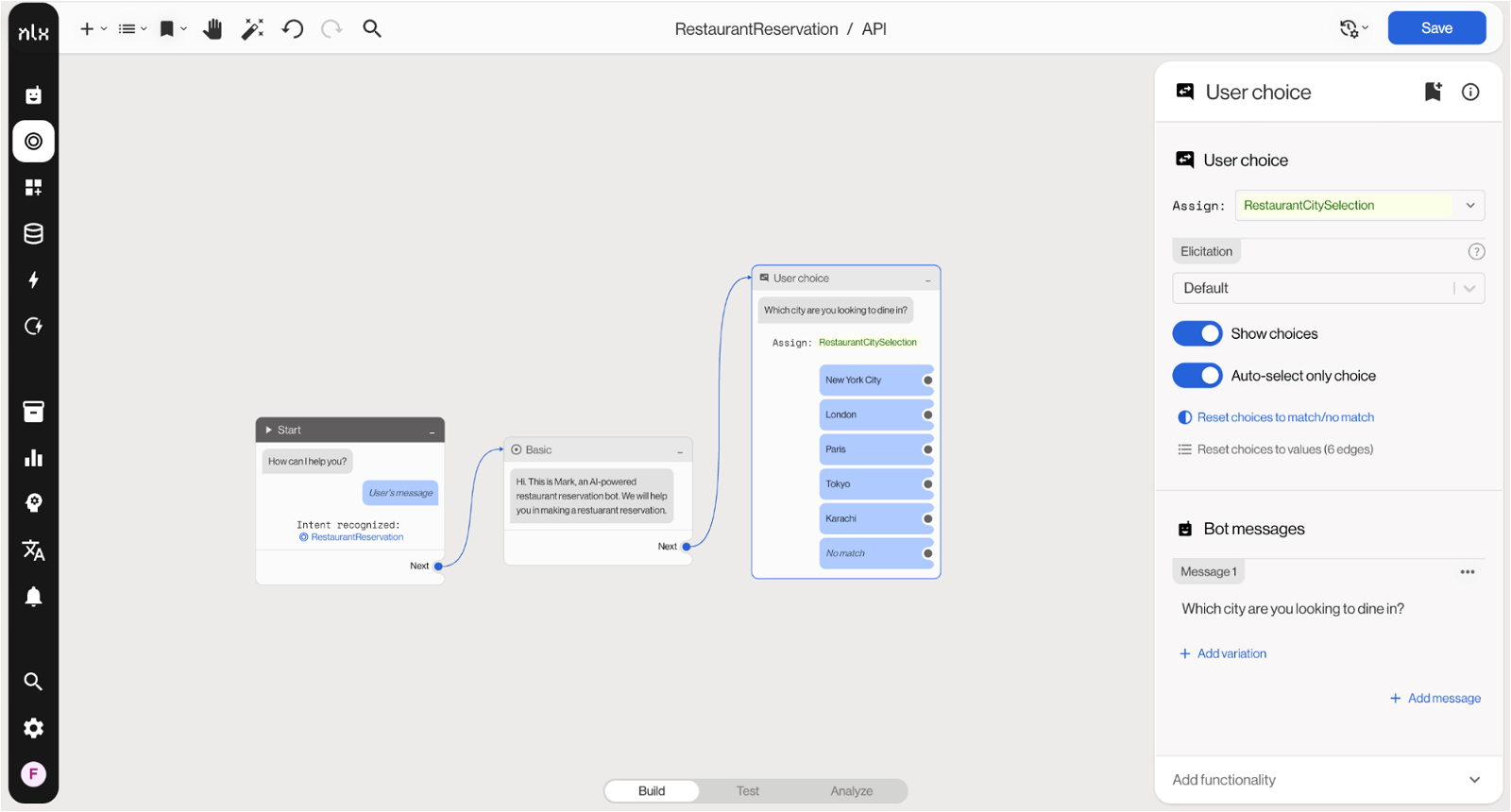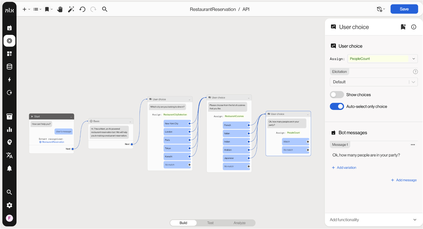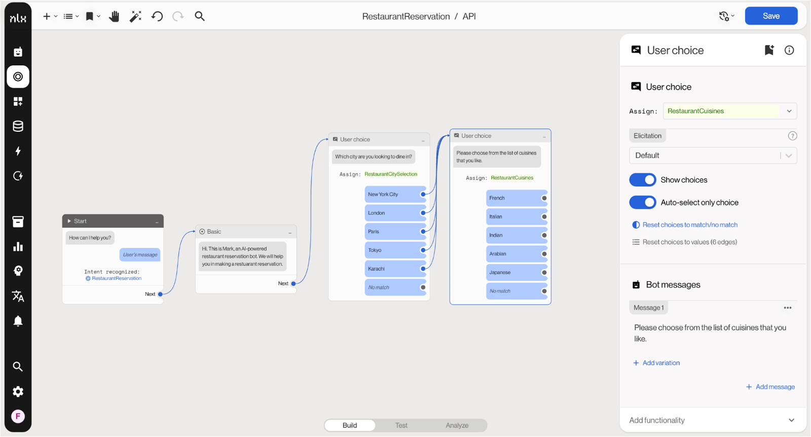 In this post, we are going to show you how to create a reservation bot using NLX. We will set up our bot, configure its intents, design conversational flows in the canvas, and deploy it. We will highlight the different types of nodes that empower the bot’s capabilities.