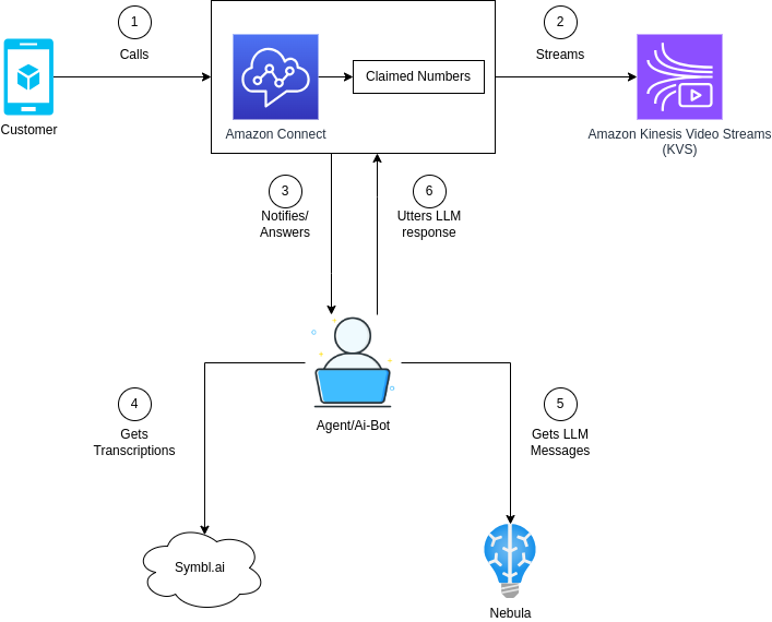 A significant advantage of Amazon Connect is its ability to seamlessly integrate with other AWS services and third-party applications, such as we are doing today with Symbl.ai’s Nebula LLM and Streaming API. This integration facilitates real-time data processing and intelligence gathering, enhancing customer service.
